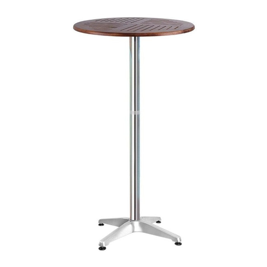 Height adjustable aluminium base, timber top cocktail table. HIRE ONLY
